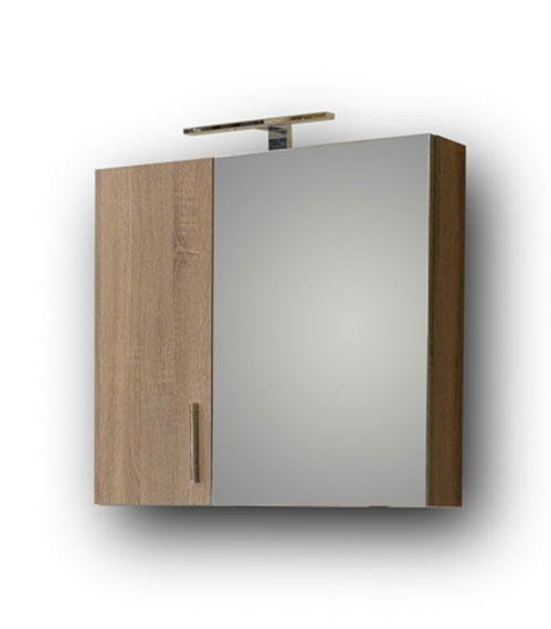 Καθρέφτης SIENA 75 SONOMA DARK. Η πρόσοψή του αποτελείται απο μεγάλο καθρέφτη με δύο πόρτες προσθέτοντας στην προοπτική του χώρου σας. Περιλαμβάνει εσωτερικο κρυφοντούλαπο με ράφι για την τοποθέτηση των φαρμάκων και αντικειμένων καθημερινής χρήσης. Συνδυάζεται με φωτιστικό LED 5 Watt IP44, το οποίο αντιστοιχεί σε λάμπα πυρακτώσεως 40 Watt.