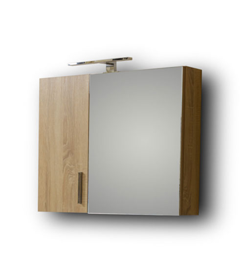 Καθρέφτης SIENA 90 SONOMA. Η πρόσοψή του αποτελείται απο μεγάλο καθρέφτη με δύο πόρτες προσθέτοντας στην προοπτική του χώρου σας. Περιλαμβάνει εσωτερικο κρυφοντούλαπο με ράφι για την τοποθέτηση των φαρμάκων και αντικειμένων καθημερινής χρήσης. Συνδυάζεται με φωτιστικό LED 5 Watt IP44, το οποίο αντιστοιχεί σε λάμπα πυρακτώσεως 40 Watt.