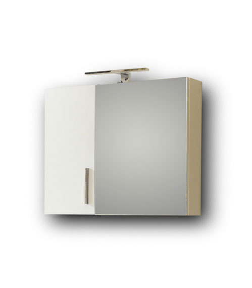 " Καθρέφτης SIENA 90 WHITE. Η πρόσοψή του αποτελείται απο μεγάλο καθρέφτη με δύο πόρτες προσθέτοντας στην προοπτική του χώρου σας. Περιλαμβάνει εσωτερικο κρυφοντούλαπο με ράφι για την τοποθέτηση των φαρμάκων και αντικειμένων καθημερινής χρήσης. Συνδυάζεται με φωτιστικό LED 5 Watt IP44, το οποίο αντιστοιχεί σε λάμπα πυρακτώσεως 60 Watt."